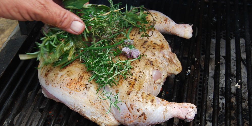 Our taste buds got excited with another recipe we found in the New York Times last week, “Pork with Green Garlic Salsa Verde.” Although we just dug over 100 beautiful red torpedo onions, we didn’t plant any garlic. But fortunately there is a vendor in our local Friday Farmer’s Market, so we stocked up on the young “green” bulbs of immature garlic. The combination of garlic, mint, parsley and red pepper flakes was a hit! Although the recipe called for seared pork cutlets, we had a delicious roasted bone-in pork roast with the salsa verde one night, and even made the salsa again with chicken that Herb splayed on the grill and dressed with herbs a few nights later. The salsa was great on a leftover chicken and fresh arugula sandwich, and we are looking forward to using it once again on grilled seafood before the window for harvesting green garlic closes.